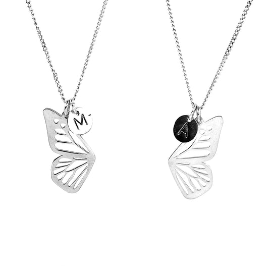 Dije Ala de Mariposa con Letra y Cadena de Plata.